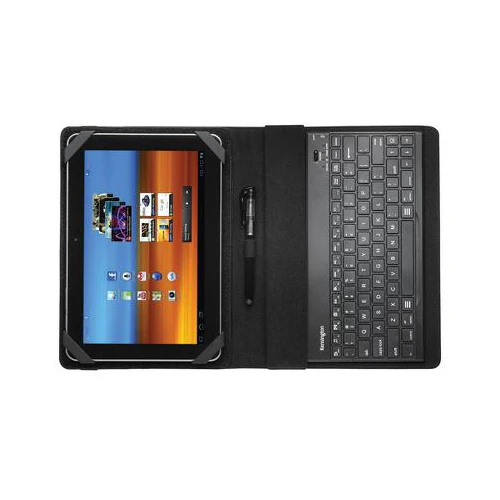 The Kensington KeyFolio™ Pro 2 provides a high-performance removable keyboard optimized for the touch typist. Built-in Bluetooth technology delivers wireless operation and one button set-up. A secured Velcro® fastener ensures tablet vertical stability with viewing angels from 70 to 20 degrees. This lightweight 3-in-1 design is optimized for travel and in-case use plus protects your Tablet from wear and scratches.